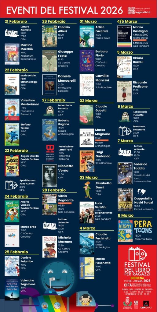 La manifestazione dedicata a libri, autori, giovani torna con un calendario ricco di eventi, presentazioni, spettacoli e formazione per insegnanti, in due settimane coinvolgenti – dal 21 febbraio all’8 marzo – con le quali si festeggia la quinta edizione.